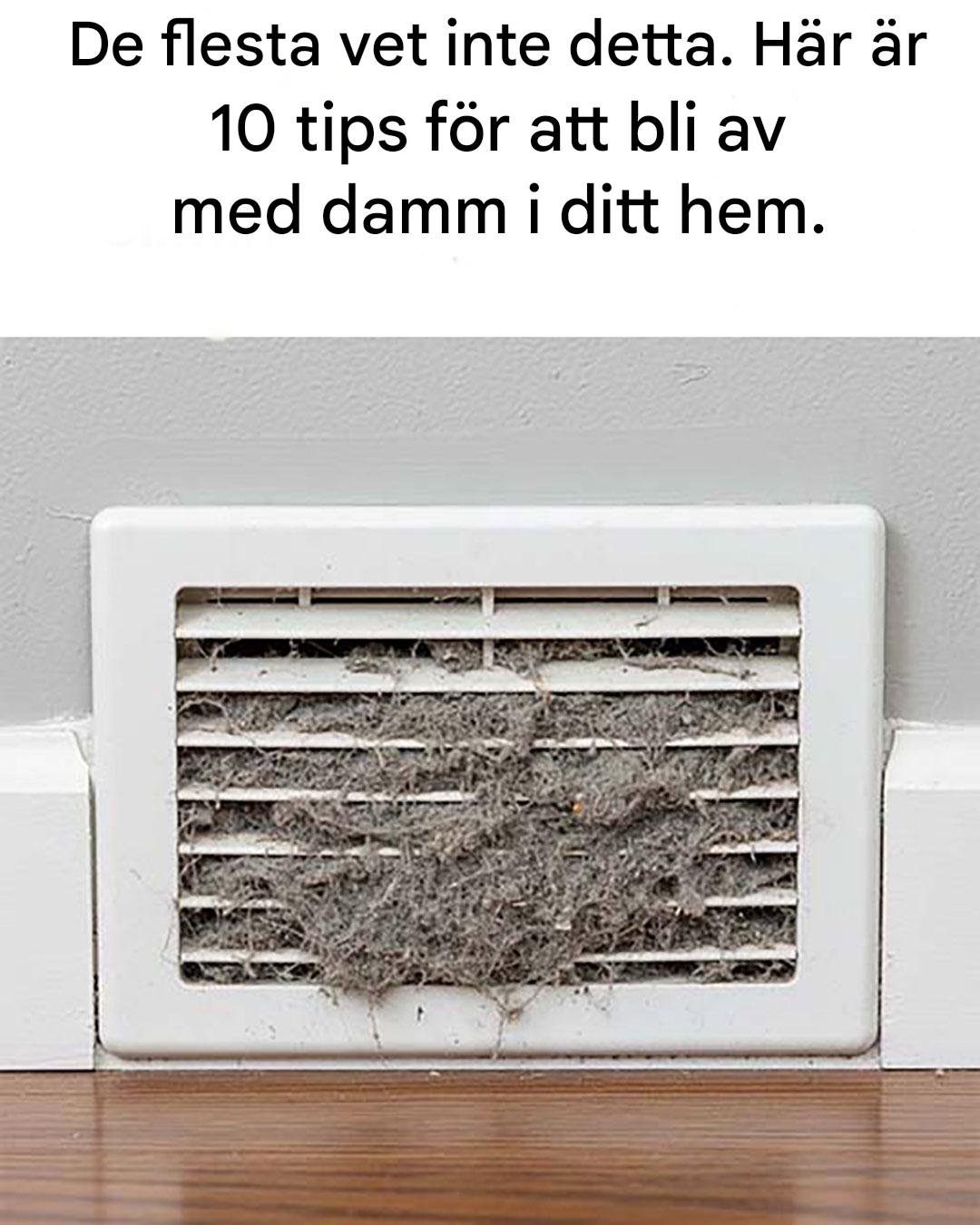 Soffor, gardiner, kuddar, plädar... allt detta är dammfällor. Dammsug eller ångrengör dem varannan vecka. Sängkläder, tvätta dem varje vecka i hög temperatur, särskilt under allergisäsonger.