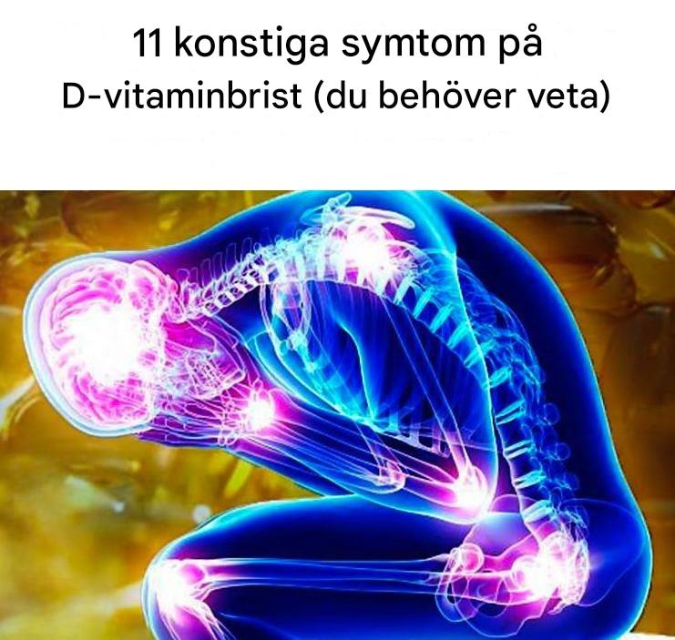 D-vitaminbrist är ofta förknippat med välkända symtom som depression, smärta i nedre delen av ryggen, högt blodtryck och autoimmuna sjukdomar. Det finns dock mer överraskande symtom som nämns mindre ofta men är lika resultat. Här är 11 märkliga tecken som kan tyda på D-vitaminbrist.