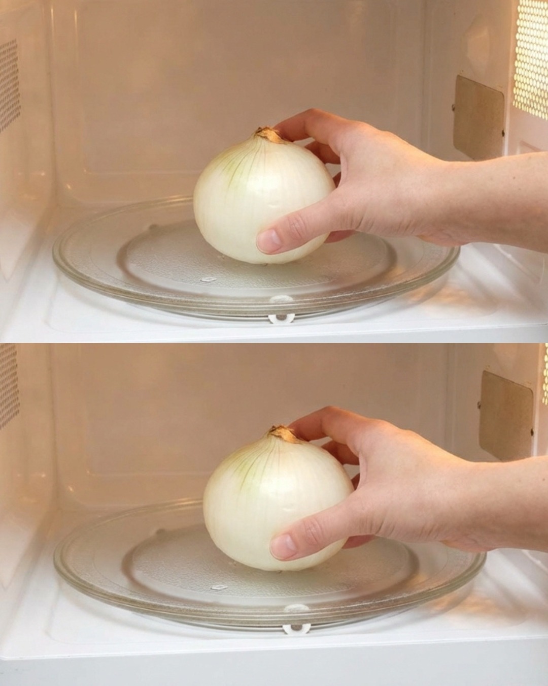 Om du skär en liten bit från varje ände av en lök och lägger den i mikrovågsugnen i 30 till 40 sekunder, kommer dina ögon inte att tåras när du ska skära den!