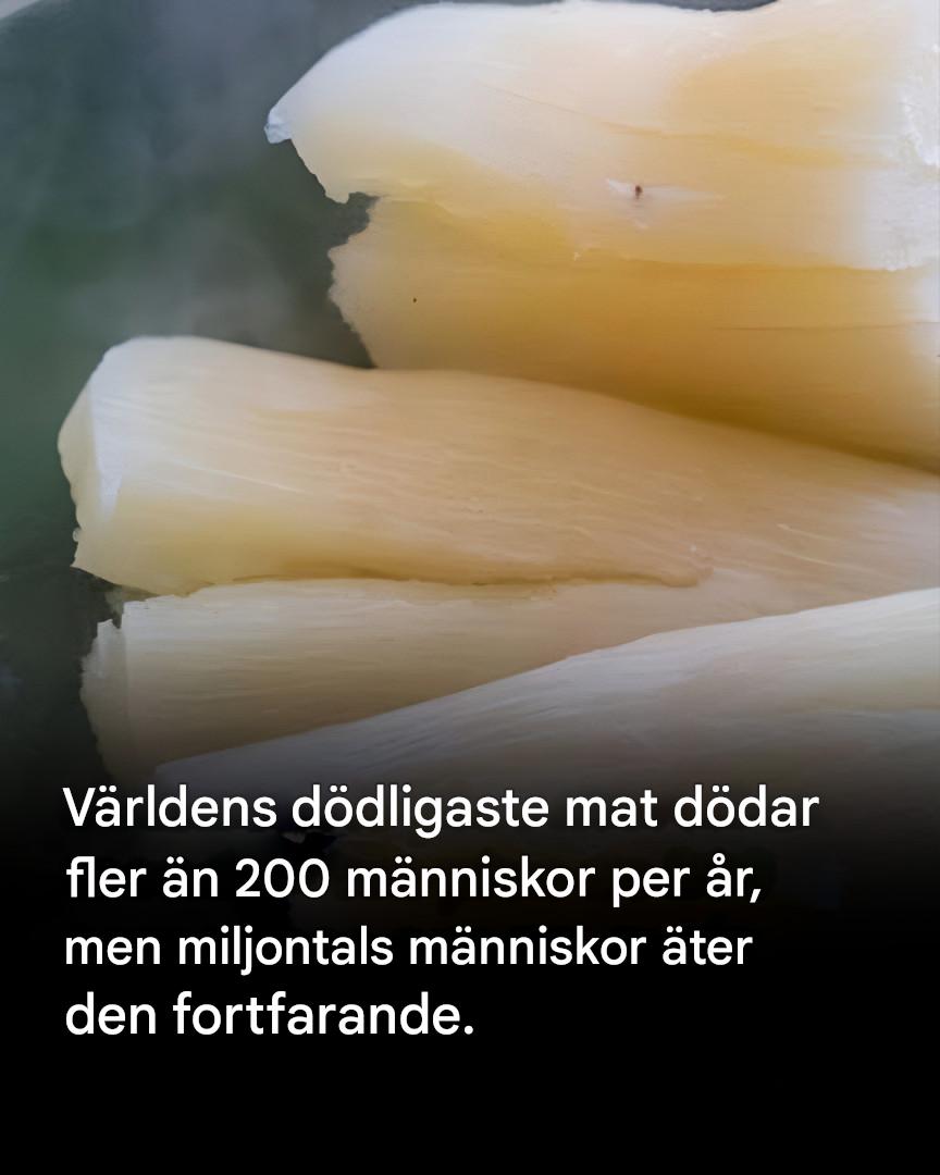 Kassava är oerhört populär i Afrika, Asien och Latinamerika och en sann källa till liv. Den växer där andra grödor misslyckas och föder nästan 800 miljoner människor. Men denna knöl döljer ett osynligt hot: föreningar som kan frigöra cyanid! Rå eller felaktigt tillagad kan den orsaka allvarlig, till och med dödlig, förgiftning. Nyckeln? Blötlägg, fermentera eller koka den alltid noggrant innan du äter den. Denna vaksamhet är avgörande för ett så vanligt livsmedel.