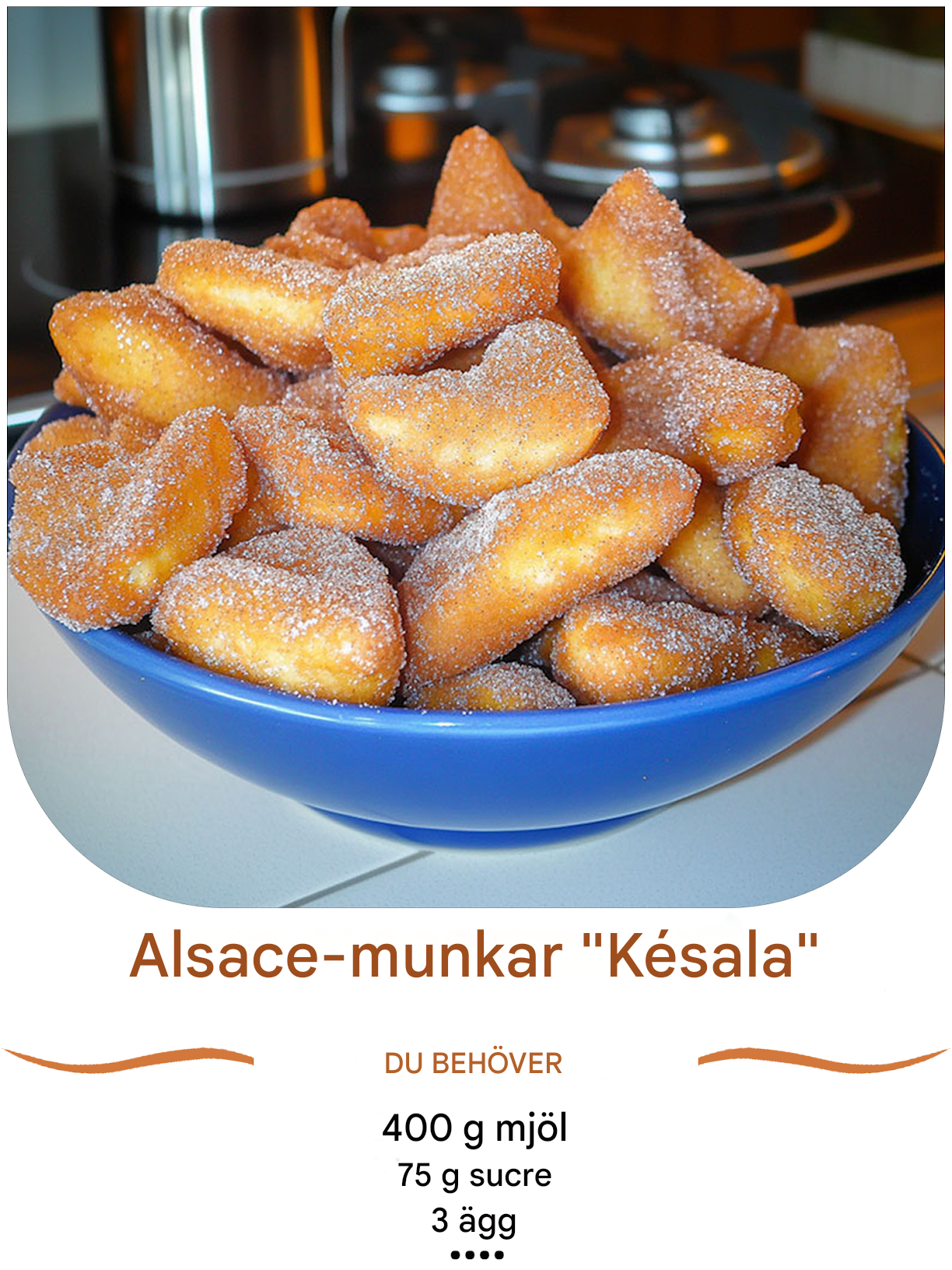 Munkar har en speciell plats i det franska köket, och varje region försvarar stolt sin egen version. I Alsace, ett land av traditioner där varje högtid ger upphov till sina specialiteter, hittar man en typisk och läcker munk: Késala . Denna lilla, gyllene och söta munk, ofta handgjord, kännetecknas av sin mjuka konsistens, delikata vaniljsmak och enkelhet i tillagningen. Bakom dess anspråkslösa utseende döljer sig en äkta proustiansk madeleine för många alsatiska familjer. Den här artikeln inbjuder dig att fördjupa dig i historien, tillagningen, tipsen och användningsområdena för denna tidlösa godsak.