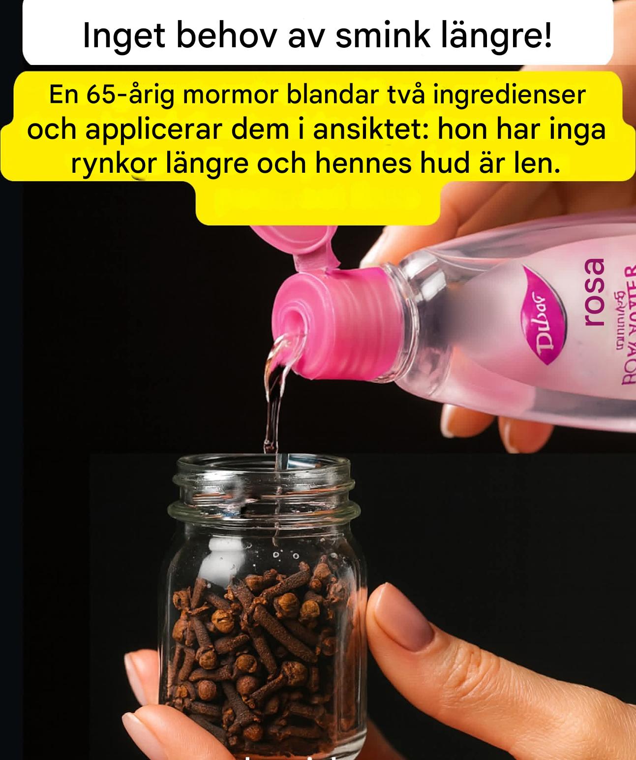 Rosenvatten är känt för sina lugnande egenskaper och delikata doft. Men när du tillsätter kryddnejlika, en krydda som är känd inom traditionella läkemedel, får du en effektiv duo mot de första tecknen på åldrande. Kryddnejlika är rik på eugenol, en kraftfull antioxidant som hjälper till att bevara hudens ungdomlighet genom att skydda kollagen. Rosenvatten, å andra sidan, jämnar ut och fräschar upp hyen samtidigt som det respekterar hudens naturliga balans.