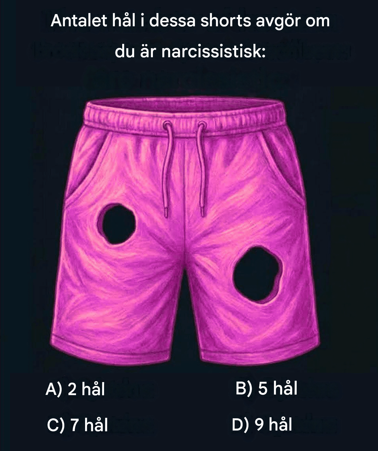Men vissa går ett steg längre. De resonerar vidare och undrar om revorna går hela vägen igenom tyget. I så fall skulle varje reva kunna räknas som två separata öppningar: en framtill och en baktill. Resultatet: sju, eller till och med nio hål, beroende på tolkningen. Och det är just här som gåtan blir spännande och avslöjar hela uppfattningens psykologi.