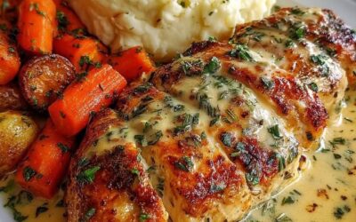 Ingredienser För kycklingen med vitlök och örter: 4 benfria kycklingbröst eller -lår utan skinn 2 matskedar olivolja 3 vitlöksklyftor, finhackade…