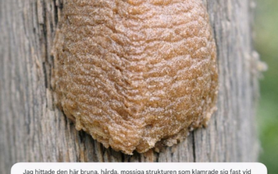 Jag hittade den här bruna, hårda, mossiga strukturen som klamrade sig fast vid en staketstolpe i trädgården. Jag skulle just skrapa bort den, men jag tvekade. Vad är det?