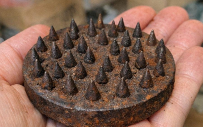 När jag städade vinden hittade jag den här tunga metallbasen täckt av vassa taggar. Den är rostig och ser farlig ut. Vad är det?