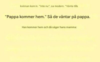 Den lilla flickan sitter vid bordet, leker oskyldigt med sin sked och tittar på sin mamma. ”Mamma, medan du arbetade…