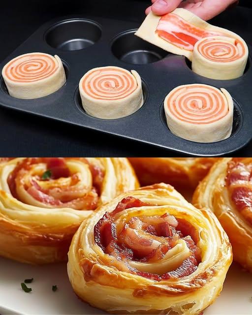 Dessa smördegsbitar med bacon och ost är den perfekta förrätten eller mellanmålet, och kombinerar krispig smördeg, smakrik bacon och smält ost i varje flagnande bit. De är snabba att tillaga och fulla av smak, vilket gör dem perfekta för alla tillfällen!