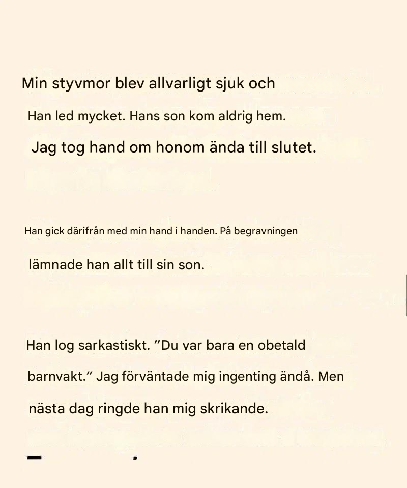 Han avslutade aldrig pappersarbetet. Istället tillbringade han de sista månaderna av sitt liv med att försöka reparera deras förhållande, vilket han inte förstod förrän han läste hennes skriftliga kondoleanser.