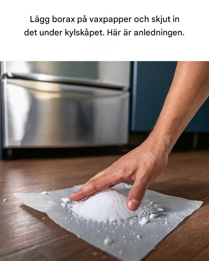 Området under ditt kylskåp är ofta en hotspot för skadedjur. Värmen och den tillfälliga fukten ger en idealisk miljö för myror, kackerlackor och andra insekter att frodas. Dessutom kan matsmulor och spill samlas under kylskåpet, vilket ger en stabil matkälla för dessa oönskade gäster. Att placera borax under kylskåpet riktar in sig på detta område med hög trafik för skadedjur, vilket ökar sannolikheten för att de kommer i kontakt med boraxen.