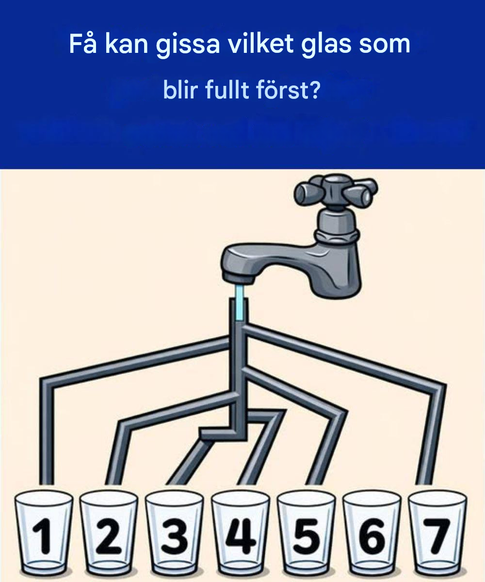 Vid första anblicken verkar detta pussel enkelt: olika glas sammankopplade med rör, vatten som rinner ner i dem, och en fråga: vilket glas fylls först? Men som med många visuella gåtor är det uppenbara svaret oftast fel, särskilt om man fattar ett beslut för snabbt.