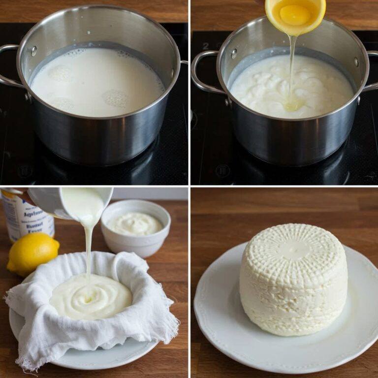 Hemgjord ost gjord på 1 liter mjölk, en halv citron och 1 yoghurt.