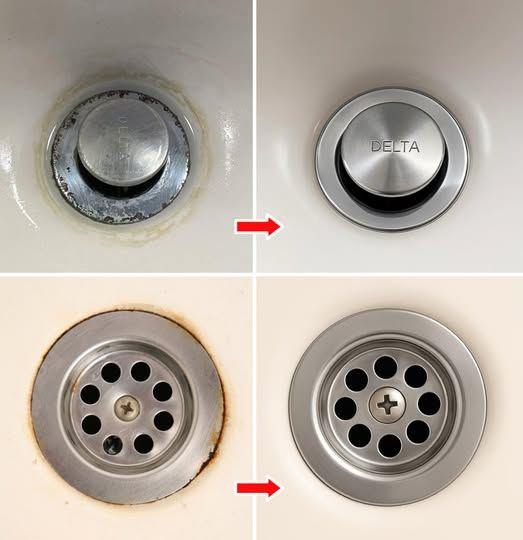 Orsaken till dessa fläckar är kalkavlagringar, som avsätts med vatten och på vilka tvålrester och smuts samlas, vilket så småningom fläckar ytan och skapar dessa fula svarta halos.