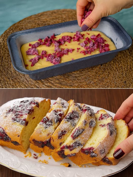 Jag hade aldrig smakat en så lätt och fluffig plommonkaka innan jag upptäckte crème fraîche-versionen. Jag kan försäkra dig om att den helt förändrar konsistensen: den förblir mjuk, smälter perfekt och håller i flera dagar. Tillsatsen av röda frukter ger en fräsch och lätt syrlig ton som står i perfekt kontrast till smetens sötma. Det är en klassiker, perfekt när som helst: till frukost med varmt te, som mellanmål till kaffe eller som dessert med en klick yoghurt eller vispgrädde.