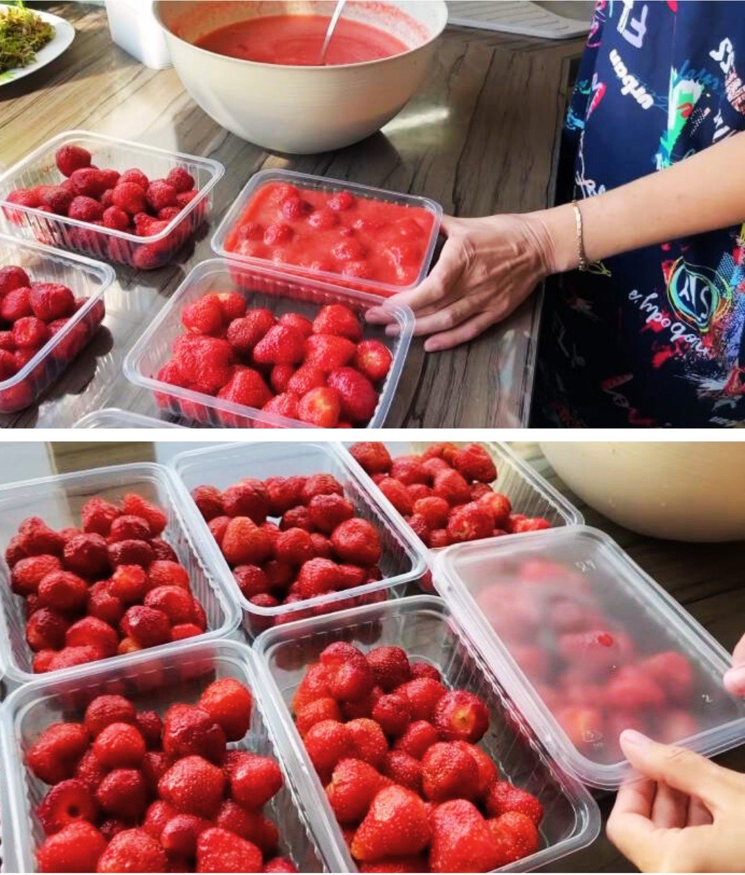 Att konservera jordgubbar "färska från trädgården" utan att tillaga dem (frys in jordgubbar).