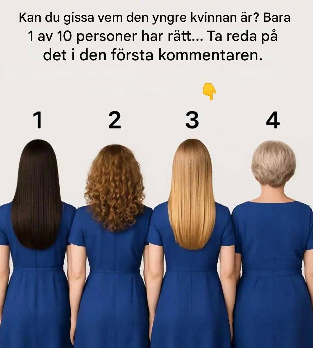 Fyra kvinnor, fyra ryggar tillbaka, fyra väldigt olika frisyrer… och bara en fråga: vem är yngst? Även om det kan verka enkelt vid första anblicken kan skenet bedra. Denna visuella gåta, som har blivit viral på sociala medier, testar din förmåga att observera de mest subtila detaljerna.