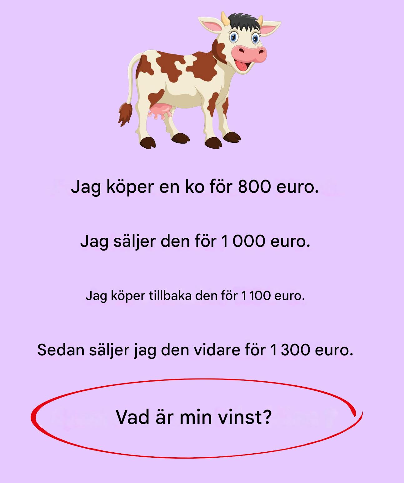 Du har sett den här gåtan: en ko som byter ägare, summor pengar som summeras och subtraheras... och till slut blir ditt sinne förvirrat. Du tror att du har lösningen, men sedan sår en detalj tvivel. Tänk om du, istället för att lita på intuition, använde en verkligt pålitlig metod? Spoiler: du behöver inte vara matematiker, bara rada upp stegen som du radar upp dina produkter i snabbköpet...