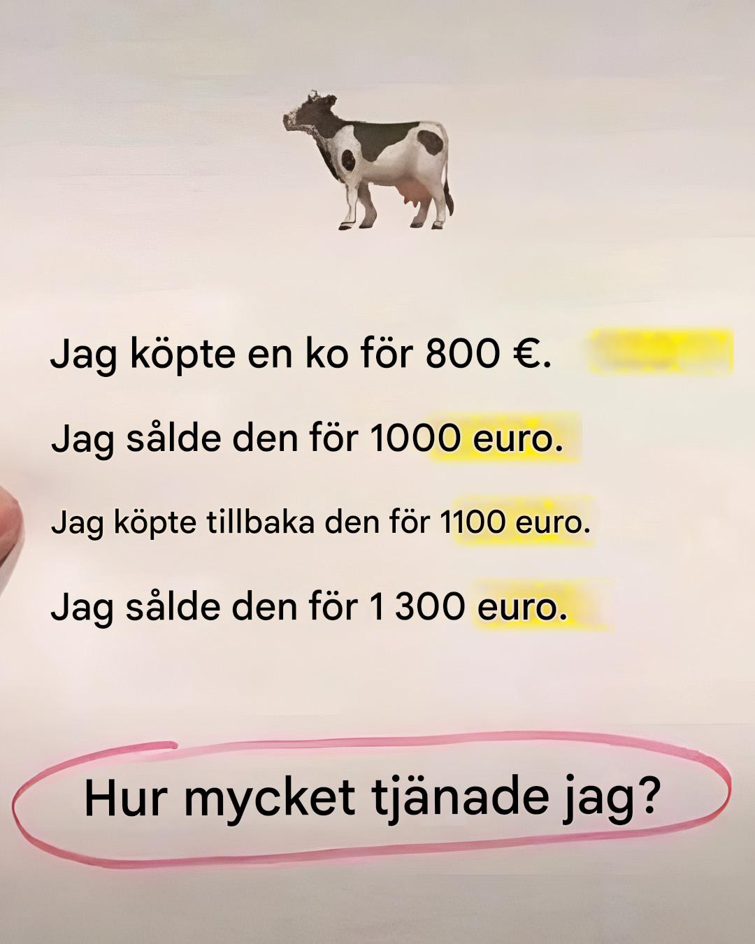 - Du köper en ko för 800 euro.