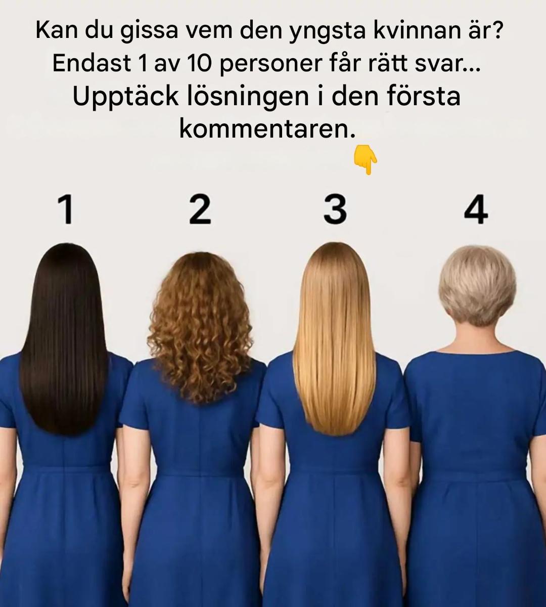 Fyra kvinnor, fyra ryggar tillbaka, fyra väldigt olika frisyrer... och en fråga: vem är yngst? Även om det kan verka enkelt vid första anblicken, se upp. Denna visuella gåta, som har blivit viral på sociala medier, testar din förmåga att observera de minsta detaljer.