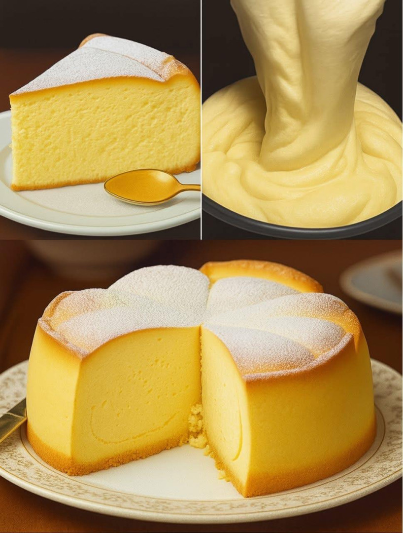 Ingredienser: 250 g färskost (rumstempererad) 50 g smör 100 ml mjölk 6 ägg (vitor och gulor separerade) 1 tsk citronsaft 100 g socker (delat) 60 g mjöl 20 g majsstärkelse 1 tsk vaniljextrakt Florsocker att pudra (valfritt) Instruktioner:
