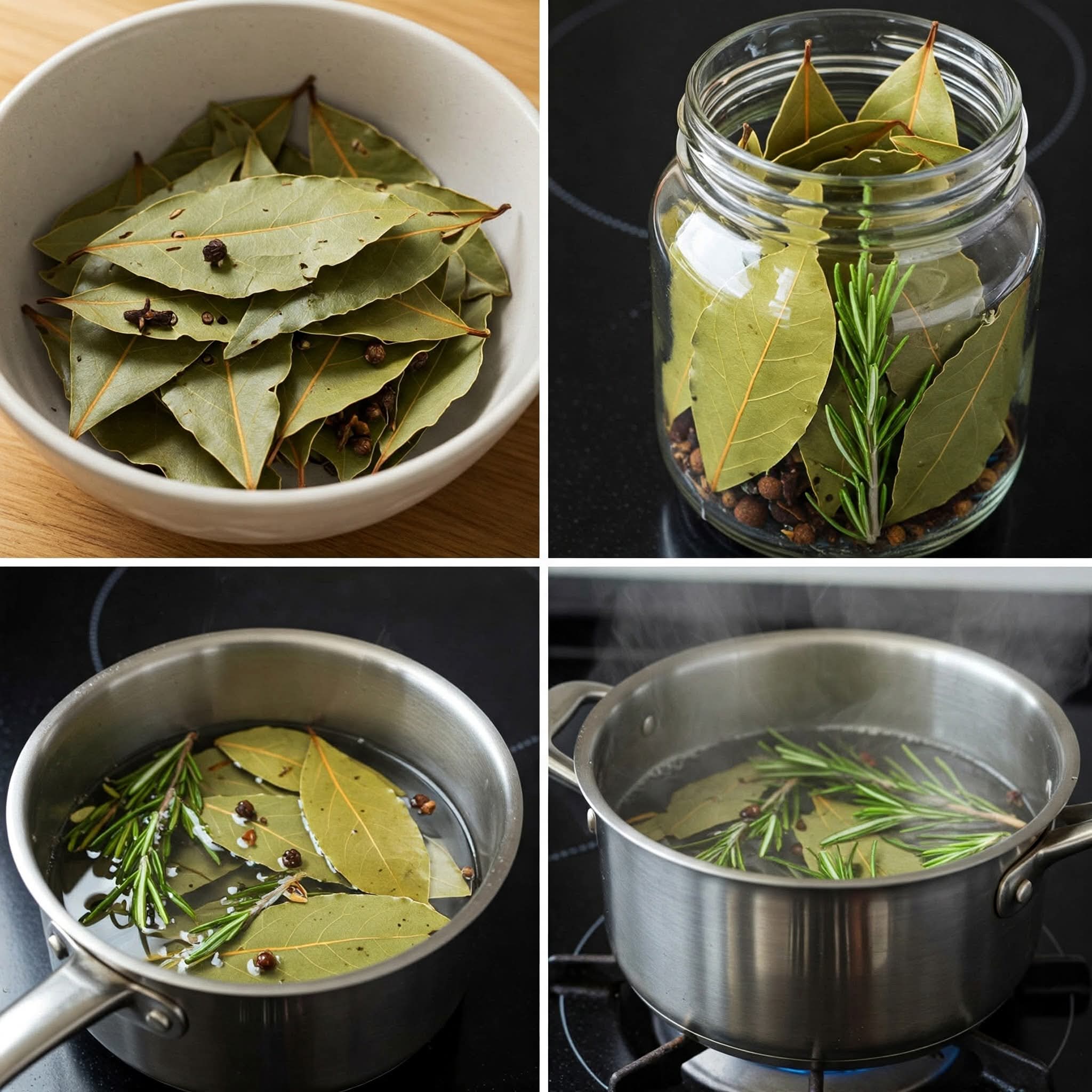 2–4 kvistar rosmarin (eller 2 matskedar torkad rosmarin): Rosmarin hjälper till att eliminera mjäll, har en antibakteriell effekt, ger volym och glans till lockarna.