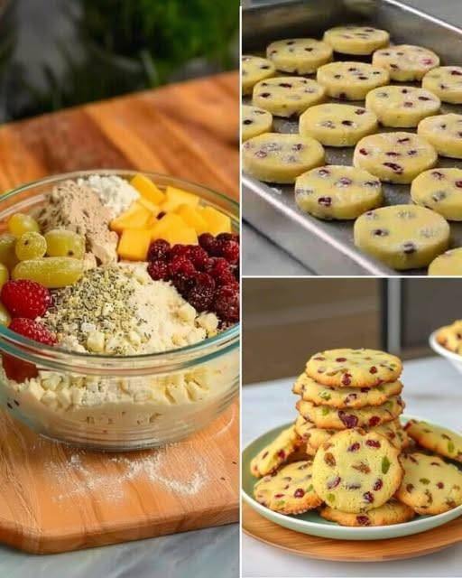 Smöriga , syrliga och perfekt krispiga kakor prydda med juveltonade frukter och krispiga nötter.