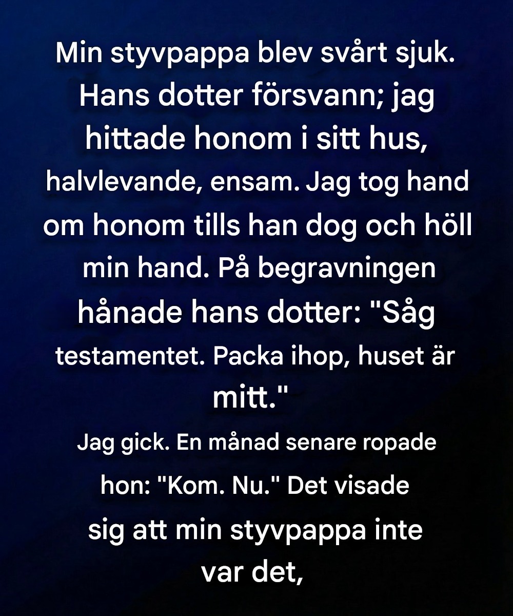 Min styvfars hus hade fallit i en tystnad som tryckte mot väggarna – inte lugn, inte vilsam, men tung. Hans biologiska dotter hade slutat komma långt innan dess. Telefonsamtal besvarades inte. Dagarna gick utan att någon hörde av sig.