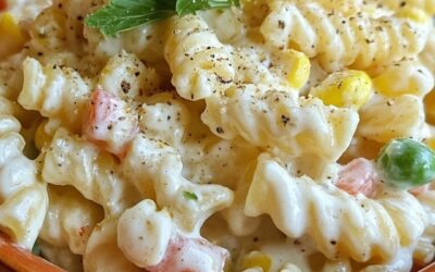 4 portioner. Tillagningstid: 20 minuter. Kylningstid: 30 minuter. Ingredienser: 300 g kort pasta (fusilli eller penne) 150 g majskorn på…