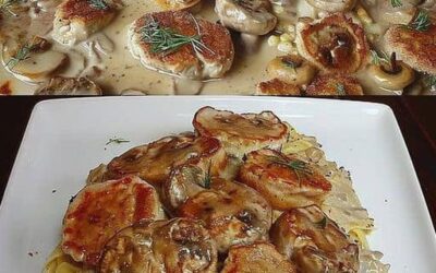Ingredienser (4 portioner): • 500 g fläsk- (eller nöt-) filé • 250 g champinjoner (skivade) • 1 lök (finhackad) •…