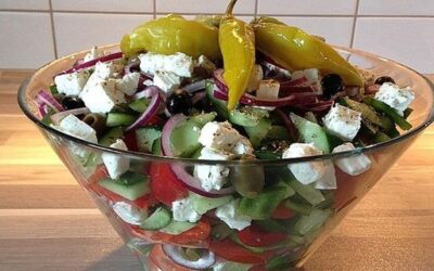 Den här grekiska salladen är fräsch, färgstark och full av klassiska Medelhavssmaker. Krispiga grönsaker, salt fetaost och saftiga oliver binds…
