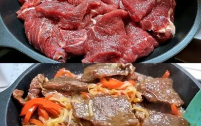 500 g nötkött , 1 tsk bikarbonat, 1 lök , 1 tsk smör , 1/2 röd paprika, 1/2 grön paprika.…