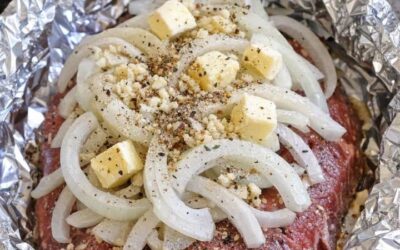 Ugnsbakad foliepåse med nötkött och lök med 5 ingredienser