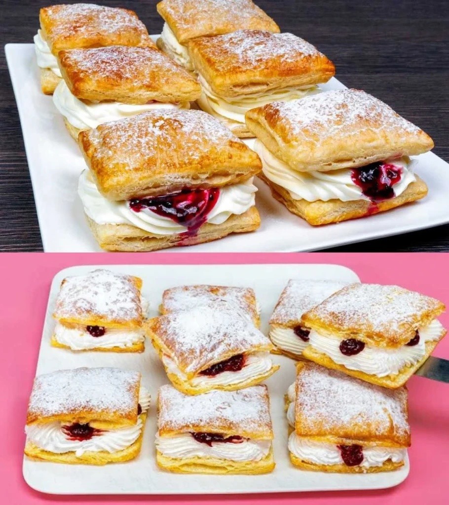 Vill du tillaga en elegant och uppfriskande dessert som kommer att smaka som en dröm? Denna himmelska delikata dessert gjord på smördeg med en delikat äggulegrädde och blåbärssylt är den rätta. Kombinationen av delikat deg, silkeslen grädde och fruktig fräschör skapar en harmoni av smaker som alla sötsugare kommer att älska.