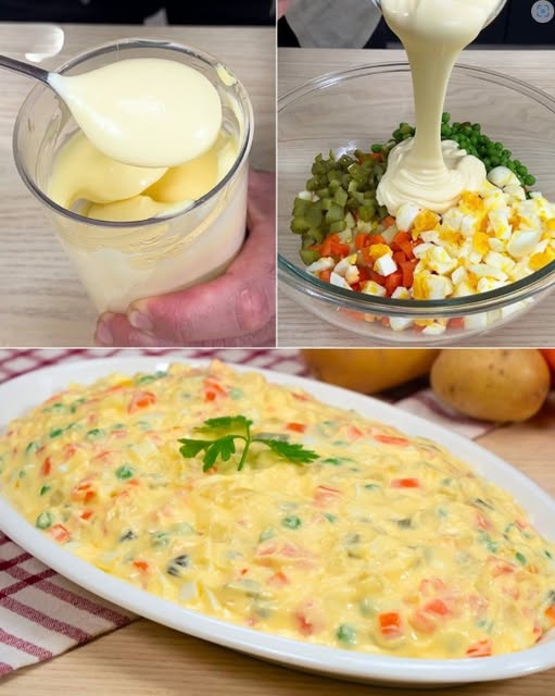 Rysk sallad, även känd som Oliviersallad, är en klassiker från östeuropeisk mat. Rik på ingredienser, krämig och full av smak, den är perfekt för ett festligt bord, familjefester eller som en elegant förrätt.