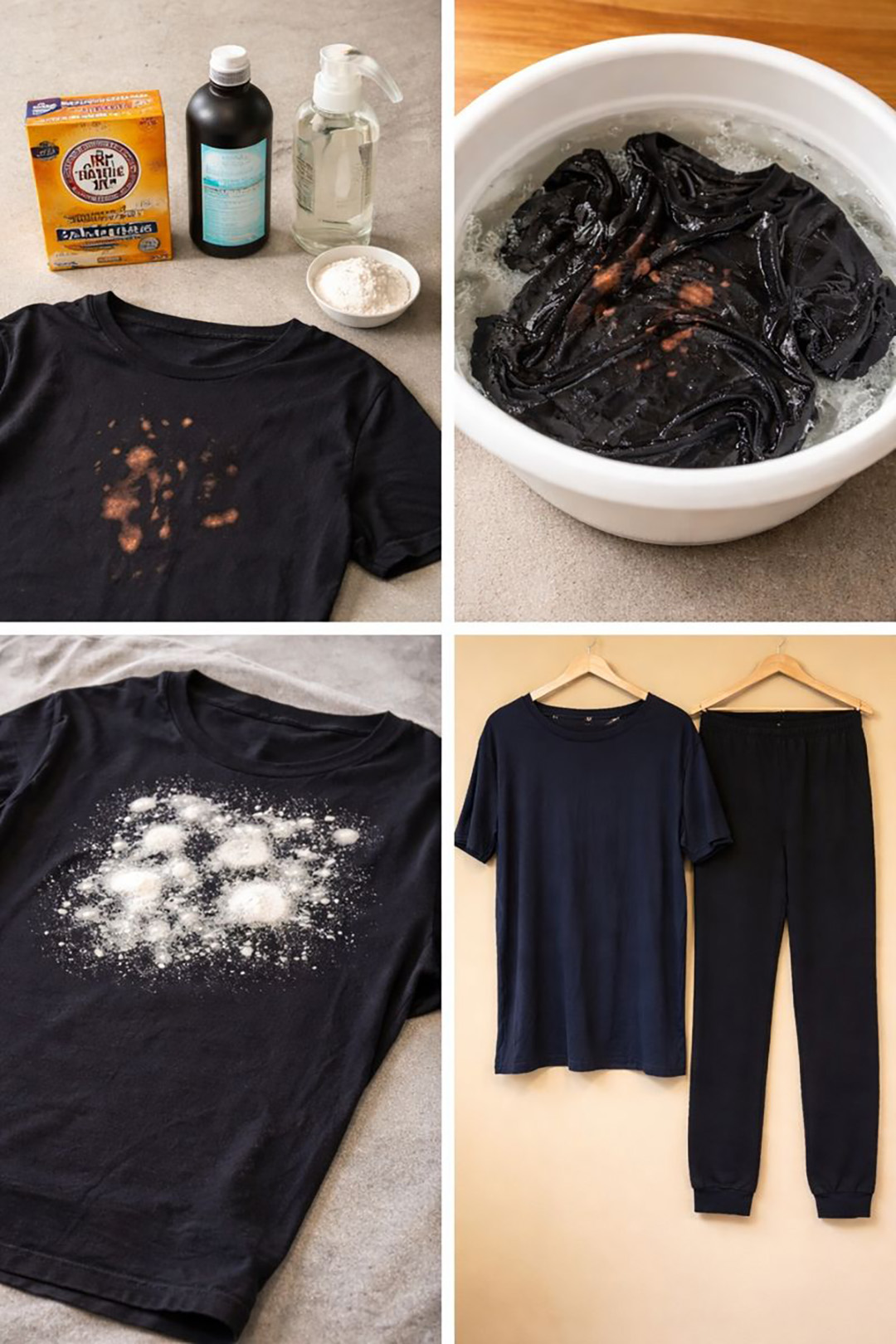 När kläder fläckas av blekmedel är det primära målet att stoppa dess verkan. Vissa ämnen, som används med försiktighet, kan neutralisera dess effekter och förhindra att fläcken sprider sig.