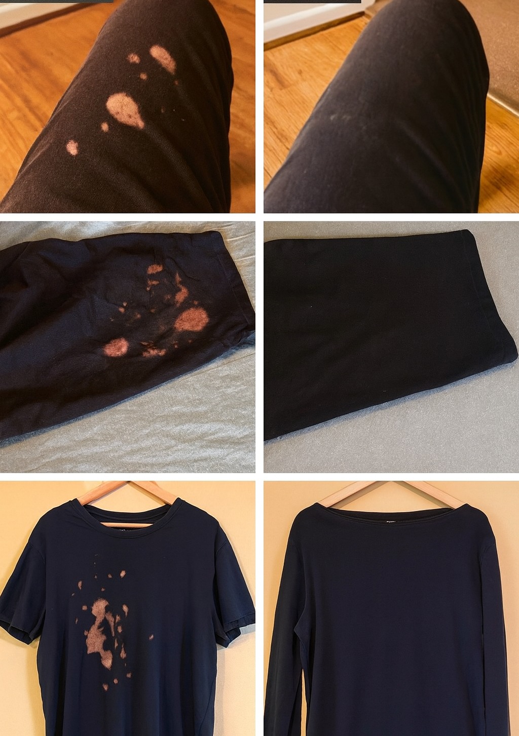 Blekmedel är ett kraftfullt oxidationsmedel. På ytor är det ett utmärkt desinfektionsmedel. Men på tyger förändrar det färgpigment och lämnar ofta ljusare (eller till och med vitaktiga) märken som är svåra att ignorera . Förutom missfärgning kan det försvaga textilfibrer om det inte sköljs noggrant.