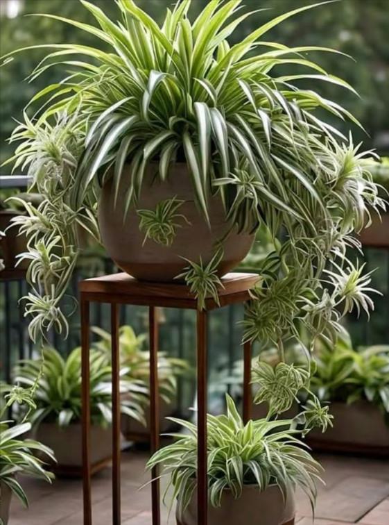Spindelväxten: en naturlig renare för ditt hem. En enda växt räcker för att absorbera gifter och fräscha upp luften. Elegant och lätt att leva med, den förvandlar varje rum till en oas av välbefinnande. Chlorophytum comosum Infödd i Sydafrika, dess kaskadformade bladverk ger en lugnande växtkänsla samtidigt som det renar luften. Naturlig reningskraft Den fångar vanliga föroreningar (formaldehyd, bensen, kolmonoxid) och frigör syre genom fotosyntes.![]()