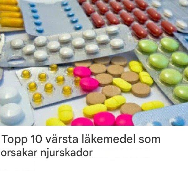 Listan över enskilda läkemedel som orsakar njurskador är så lång att det är svårt att begränsa sig till de tio bästa. Så jag har valt att lista dem efter läkemedelstyp: antibiotika, smärtstillande medel etc.