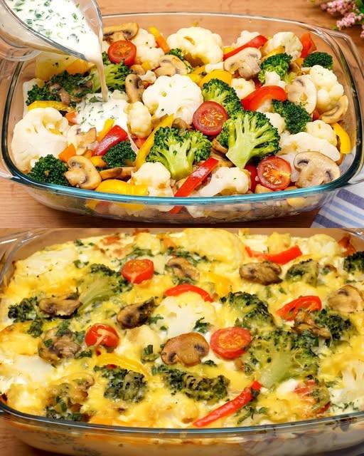 Denna ugnsbakade grönsaks- och ostgryta är en utsökt och rejäl rätt, perfekt till alla måltider. Genom att kombinera näringsrik broccoli, blomkål och en mängd olika färgglada grönsaker med en krämig blandning av ägg och smält ost kommer denna gryta garanterat att glädja alla vid bordet. Den är lätt att tillaga och fungerar som en tillfredsställande huvudrätt eller ett utsökt tillbehör. Tillagningstid: