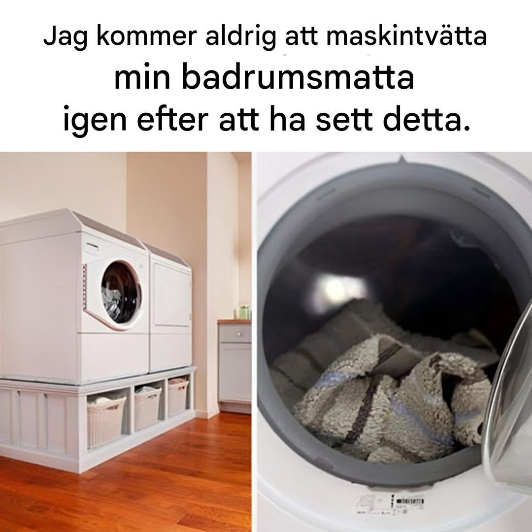 De flesta badrumsmattor har en halkfri gummibeläggning. I en tvättmaskin tål dock detta material inte varmt vatten, centrifugering eller friktion: