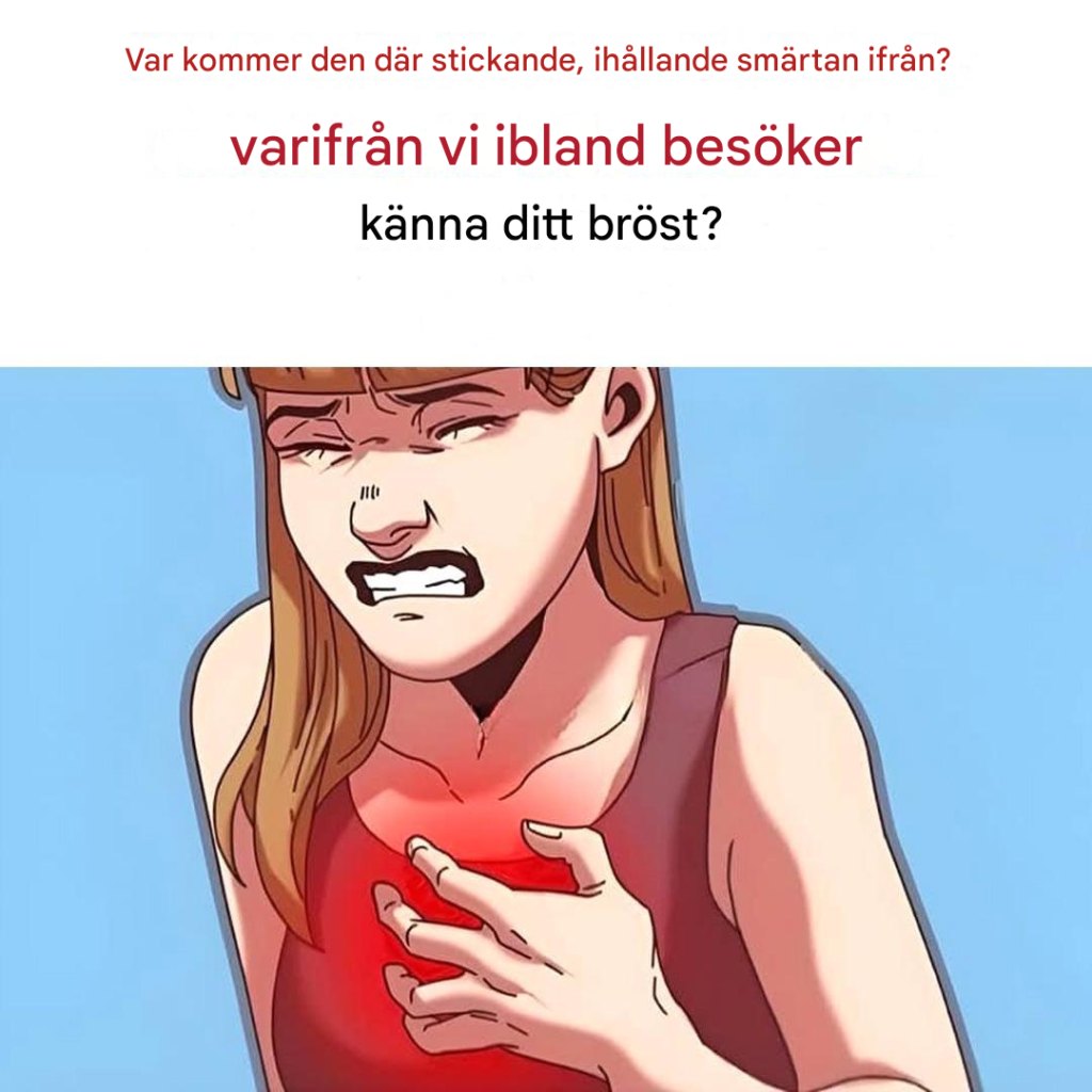 - Bröstsmärta (inte alltid närvarande)