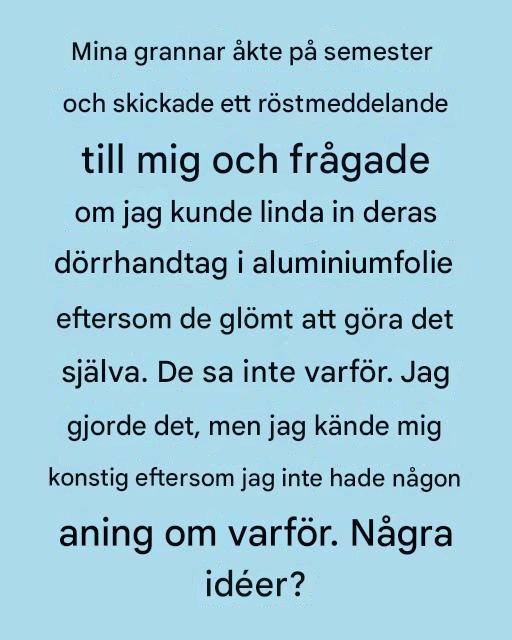 Till en början kan det verka som ett av de där knäppa knepen på nätet att linda aluminiumfolie runt ett dörrhandtag – improviserat, till och med lite fånigt. Men den här lilla vanan har i tysthet spridit sig bland husägare som söker praktiska och billiga sätt att förbättra säkerheten. Det som verkar trivialt kombinerar i själva verket psykologi, medvetenhet och enkel fysik till ett förvånansvärt effektivt verktyg.