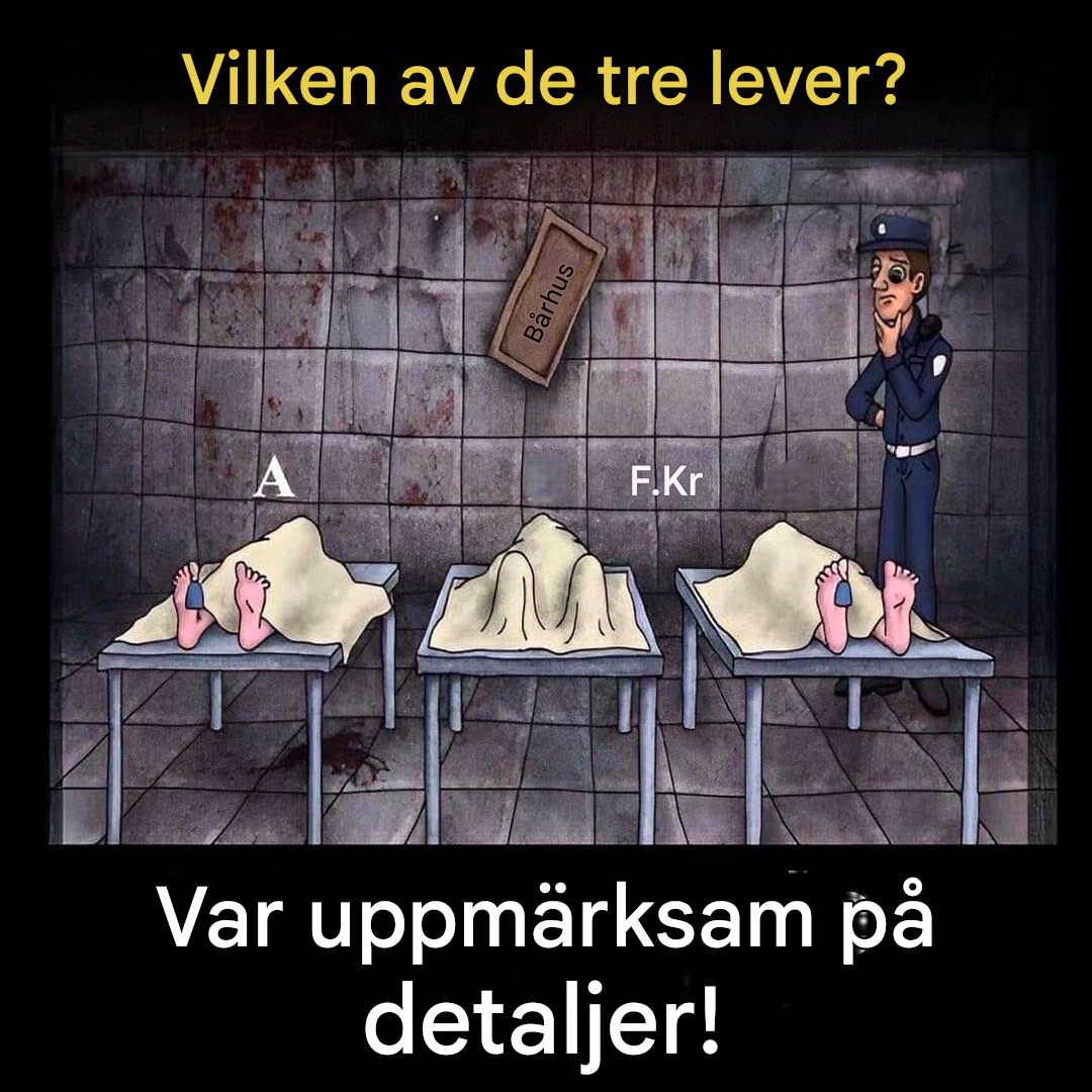 En enda blick… och ändå kan allt undgå dig. Tror du att du har ett skarpt öga? Detta visuella pussel kommer att sätta din noggrannhet på prov. Tre personer, en frusen scen, en oroande fråga: vem lever fortfarande? Svaret finns precis där, framför dina ögon, men du måste fortfarande veta hur du observerar noggrant. Redo att anta utmaningen och ge din hjärna ett träningspass som aldrig förr?