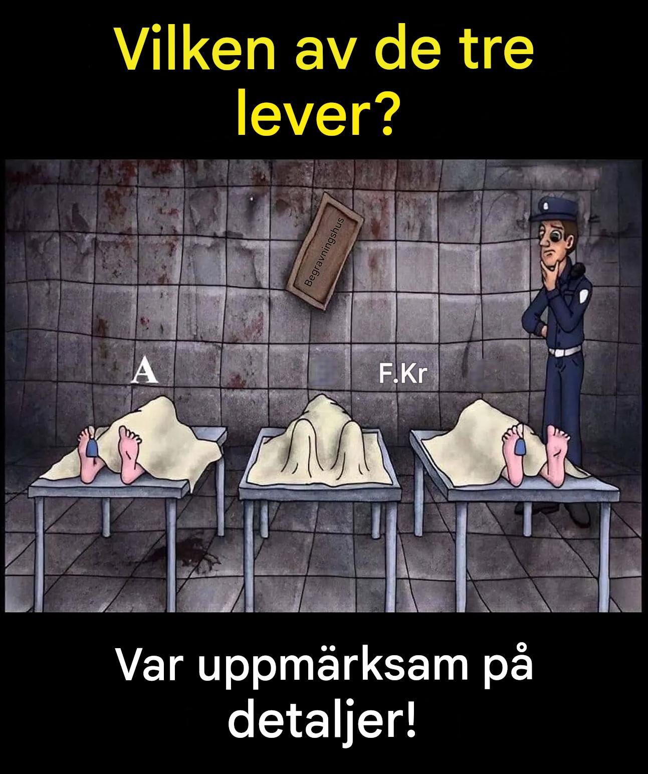 Tänk om en enda bild dolde en hel historia? Tre frusna människor, en orörlig miljö, ett tvivel som smyger sig på... Gåtan är fruktansvärt enkel: bland dessa silhuetter, vem andas fortfarande? Vi tror att vi ser det uppenbara, vi tror att vi har "den rätta", sedan skakar en liten detalj om allting. Det är varken en grym fälla eller ett vetenskapligt test: bara en inbjudan att se annorlunda, lugnt, som en detektiv som vet att sanningen ligger i millimetern.